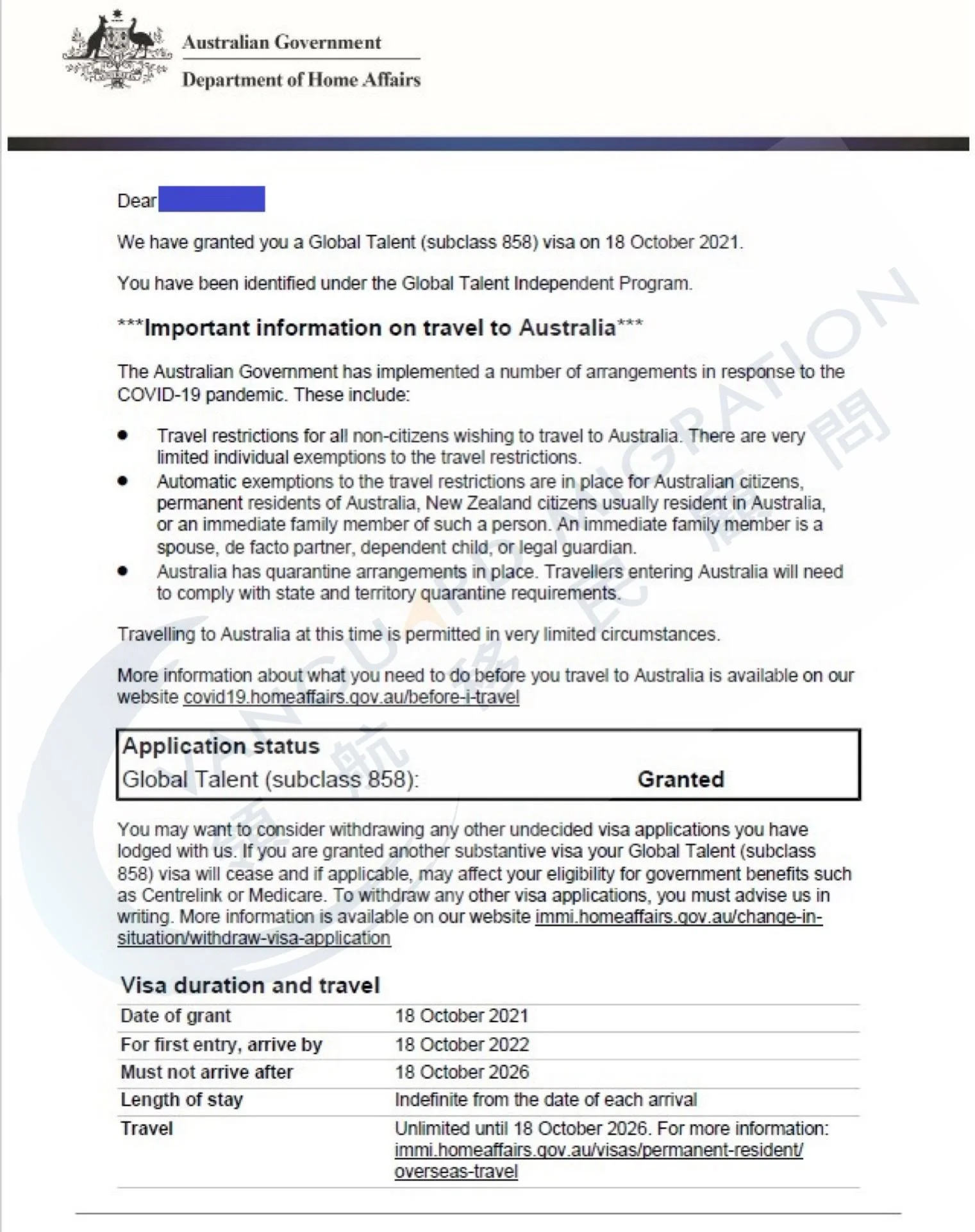 恭喜曬W小姐一家獲批難能可貴的 GTI Visa!